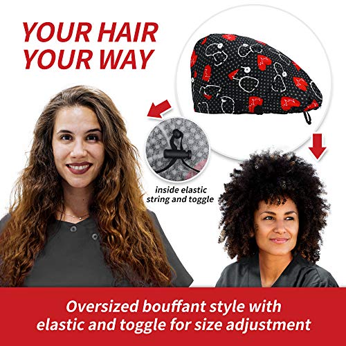 ABAMERICA 2 Pack Bouffant Caps with Button and Sweatband, Adjustable Scrub Caps for Women Men, One Size Fits All