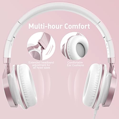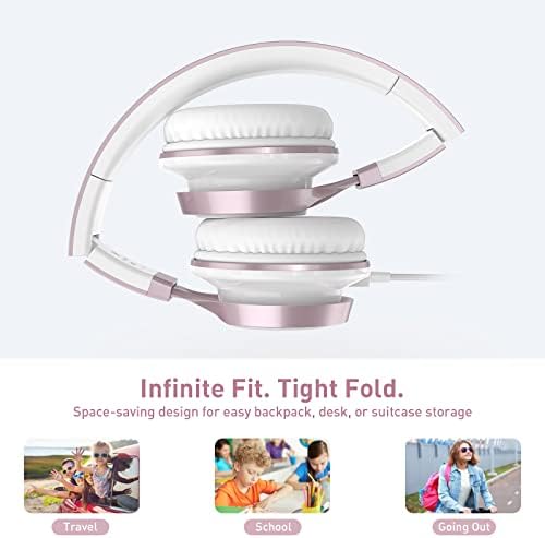 AILIHEN Kids Headphones, Headphones for School Girls Wired On-Ear Headsets with Microphone for Chromebook Laptop Computer, Foldable Adjustable Teen, Tangle-Free, 3.5mm Jack (Rose Gold)