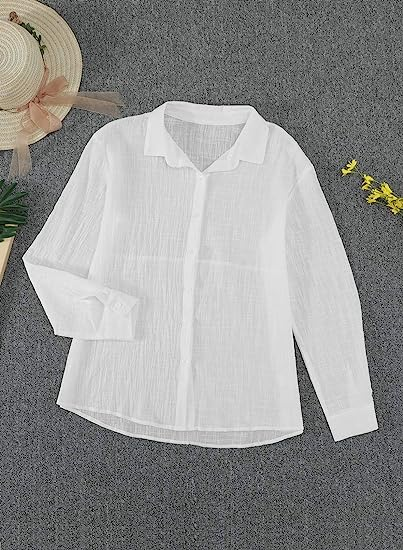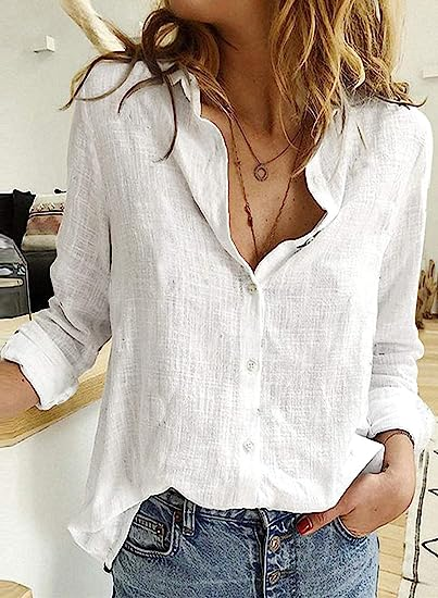 Astylish Womens V Neck Roll up Sleeve Button Down Blouses Tops