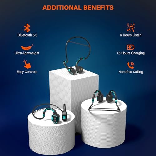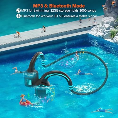 Bone Conduction Headphones Swimming Headphone - IP68 Waterproof Open Ear Headphones with MP3 Play 32G Memory Inductive Wireless Bluetooth Sports Headset for Running Swimming (Blue)