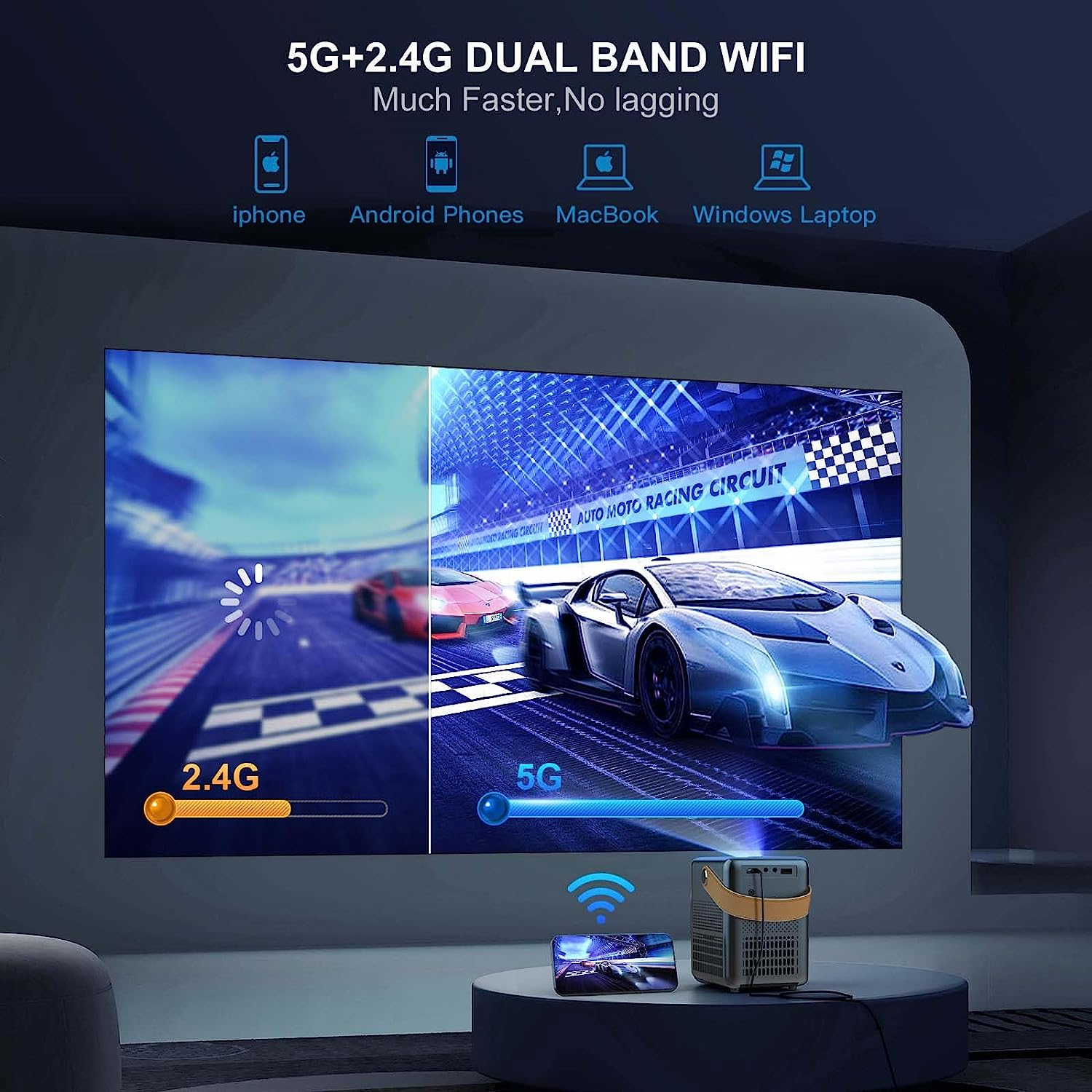 [Electric Focus] Mini Projector with 5GWiFi and Bluetooth, WIMIUS 1080P Outdoor Projector, Portable Movie Projector, 300" Screen, Compatible with iOS/Android/TV Stick/HDMI/PS5