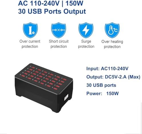 MaxLax USB Charger Station,30-Port 150W/30A Multiple USB Charging Station,Multi Ports USB Charger Charger for Smartphones,Tablets,and Other USB Devices
