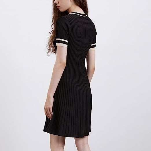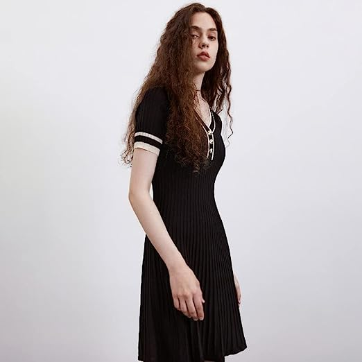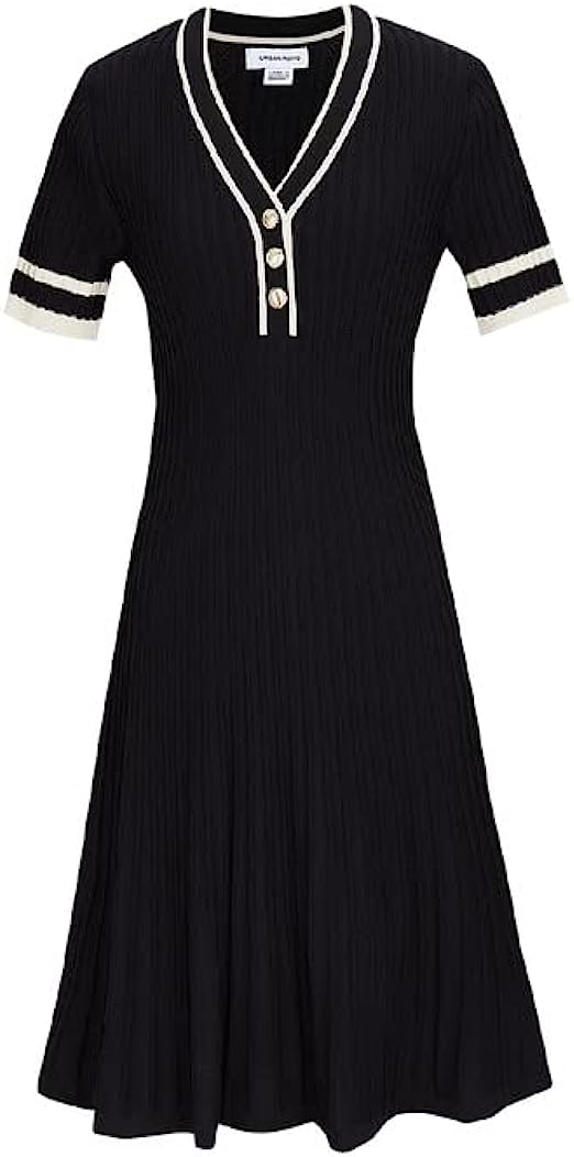 URBAN REVIVO Women Short Sleeve Casual Dresses V Neck Party Loose A-Line Dress