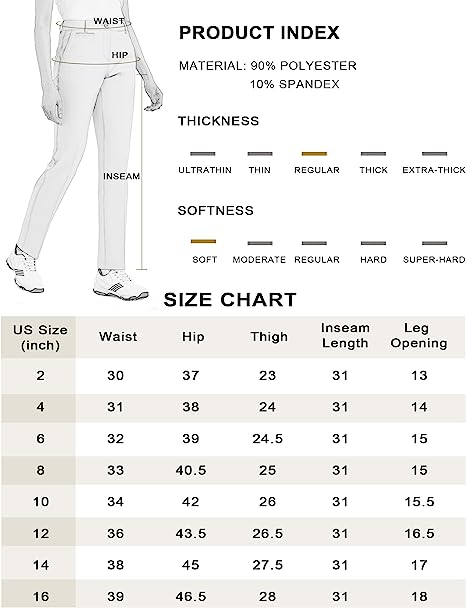 Women's Golf Pants Stretch Straight Lightweight Breathable Twill Work Chino Ladies Pants