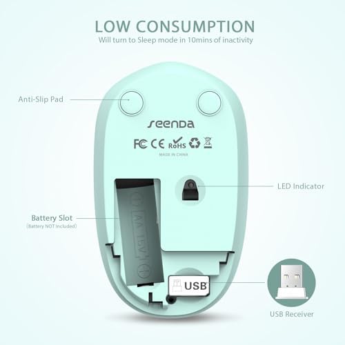 seenda Wireless Mouse, 2.4G Noiseless Mouse with USB Receiver - Portable Computer Mice for PC, Tablet, Laptop with Windows System - Mint Green