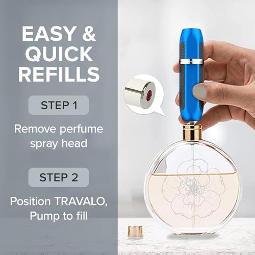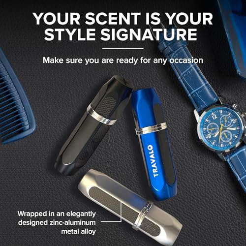 Travalo Vector Perfume Atomizer Bundle Refill System TSA Approved Reusable Easy Fill Mini Sprayer Lightweight, Stylish Handsome Metal Outer Case Cologne Aftershave | Silver, Blue, Black 3 Pack 0.17oz