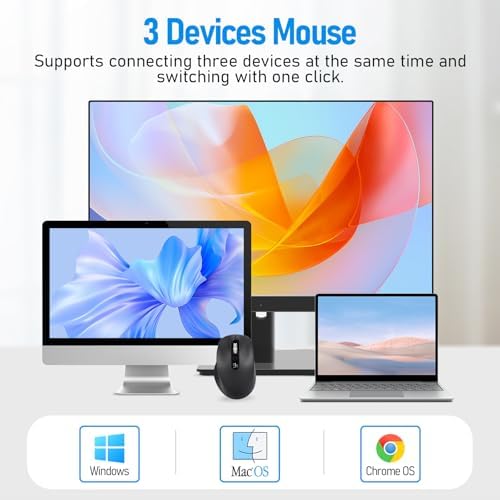 INPHIC Multi-Device Bluetooth Mouse, Upgraded Visible Battery, 2400 DPI, Silent Ergonomic Computer Wireless Mouse for Laptop, Mac, PC etc.