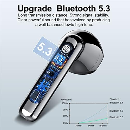 Wireless Earbuds 2024 Bluetooth 5.3 Headphones with HD Mic HiFi Stereo Sound, Wireless Earphones with Dual LED Display Touch Control, IPX7 Waterproof 30H Playtime Mini Ear Buds for iOS Android, Black