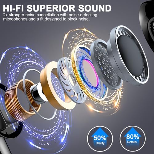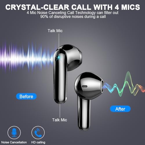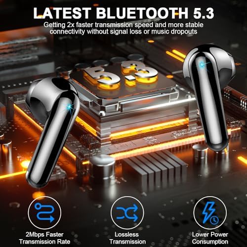 Wireless Earbuds, Bluetooth 5.3 Headphones LED Power Display, 2025 New Wireless Earphones, 4 ENC Noise Cancelling Mic, HiFi Stereo, 48H Playtime Mini Case IP7 Waterproof for Sport Walk