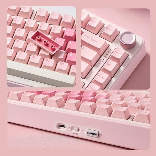 YUNZII B75 PRO Wireless Mechanical Keyboard,75% Layout with Knob,Hot Swap Gasket Custom Structure,Creamy Pre-lubed Switches,RGB Backlit,Bluetooth/Type-C/2.4G for Win/Mac(Milk Switch,Pink)